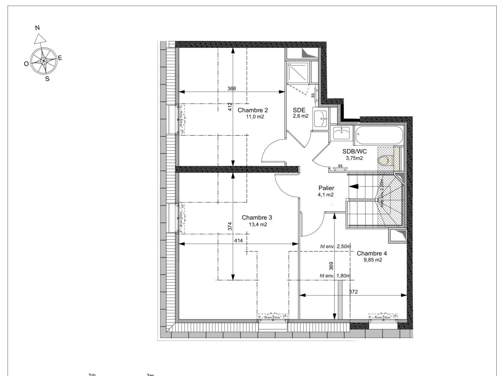 Dans un immeuble BBC, normes PMR, cet appartement duplex 5P est composé comme suit :