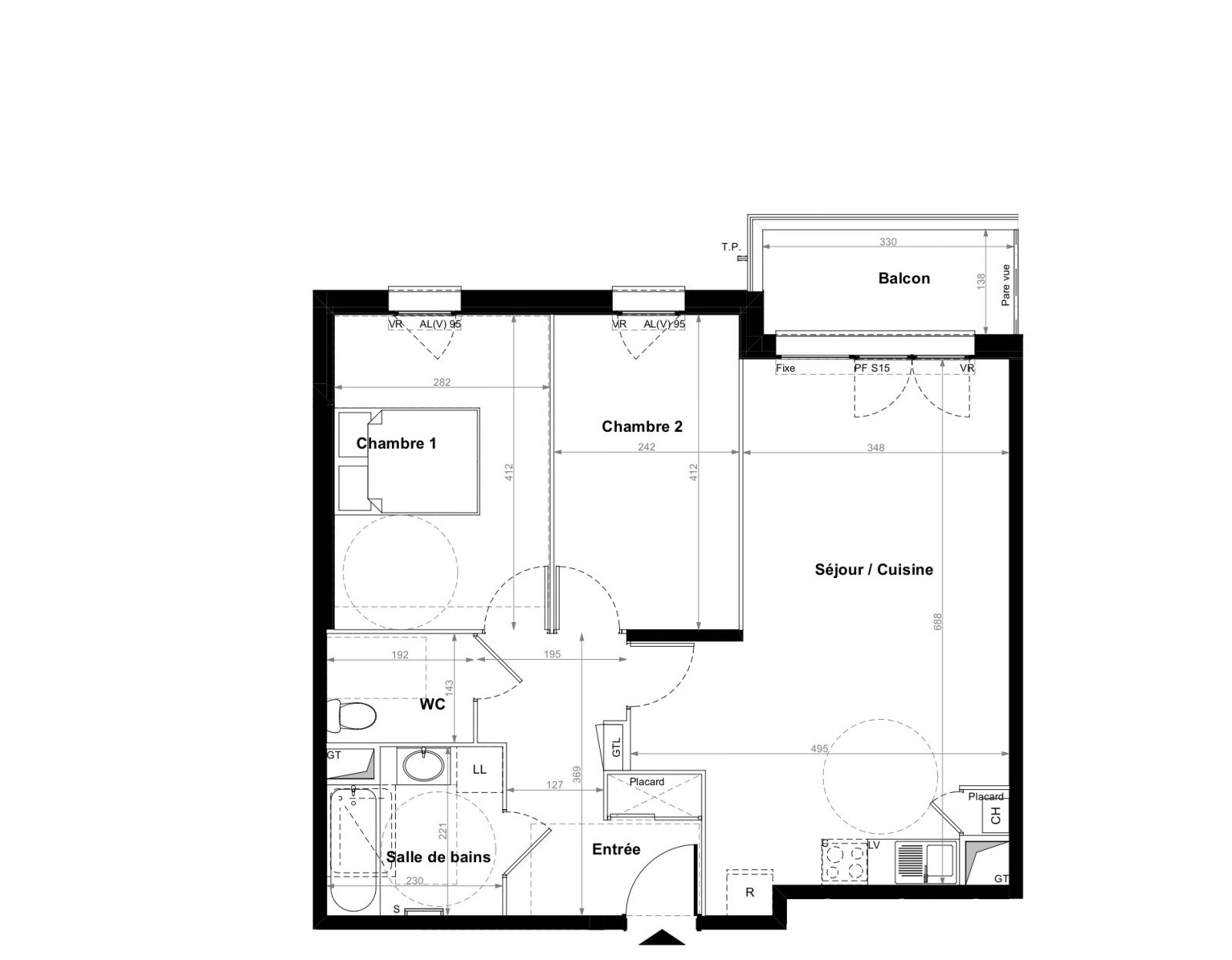 Dans un immeuble BBC, normes PMR, cet appartement 3P se composera d'un séjour cuisine ouvert sur un espace extérieur, de deux chambres, d'une salle de bains et WC séparés.
