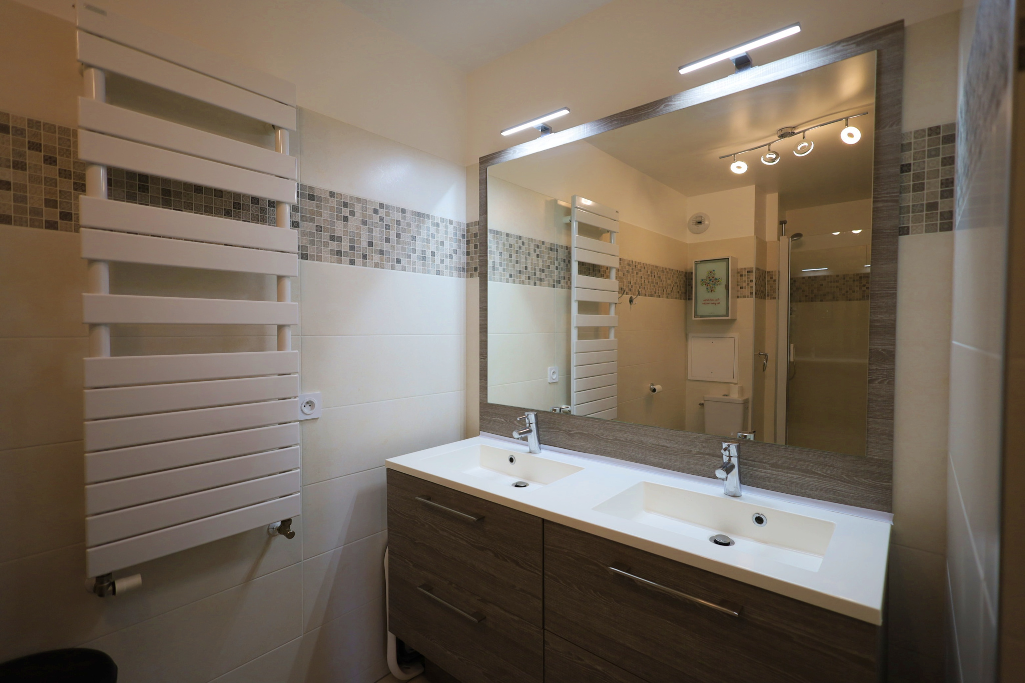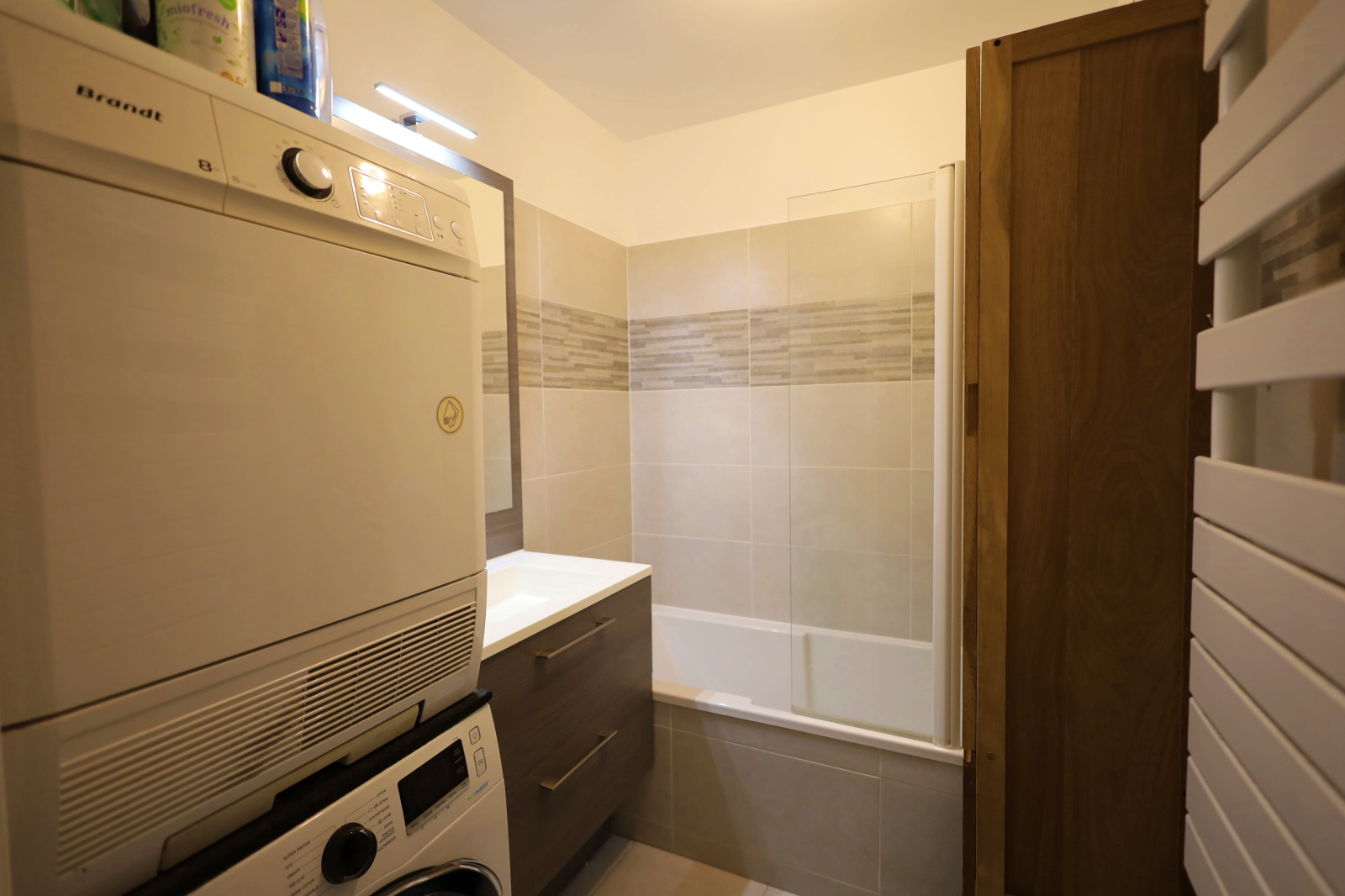 Commodités : Une salle de bains indépendante, un WC séparé ainsi que de nombreux rangements intégrés complètent l'appartement.